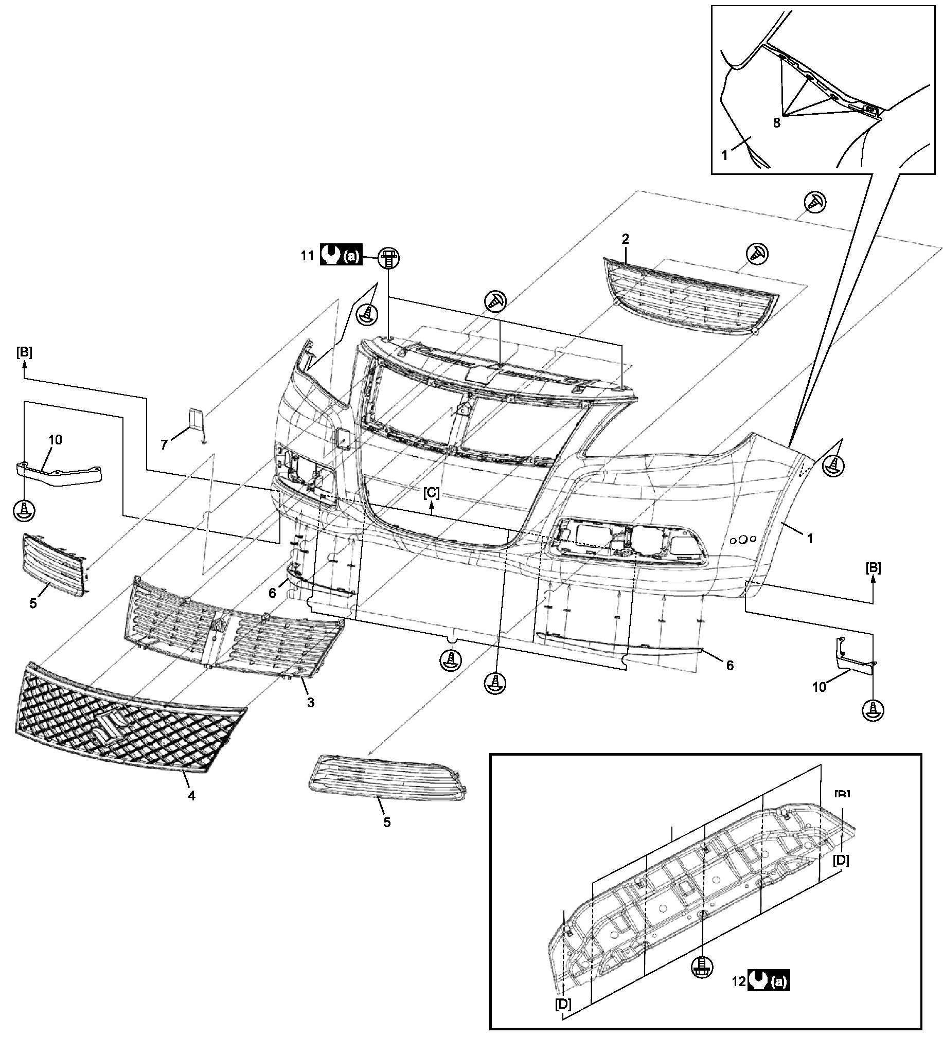 - Tighten front bumper upper bolts and front bumper lower cover bolts to specified torque.