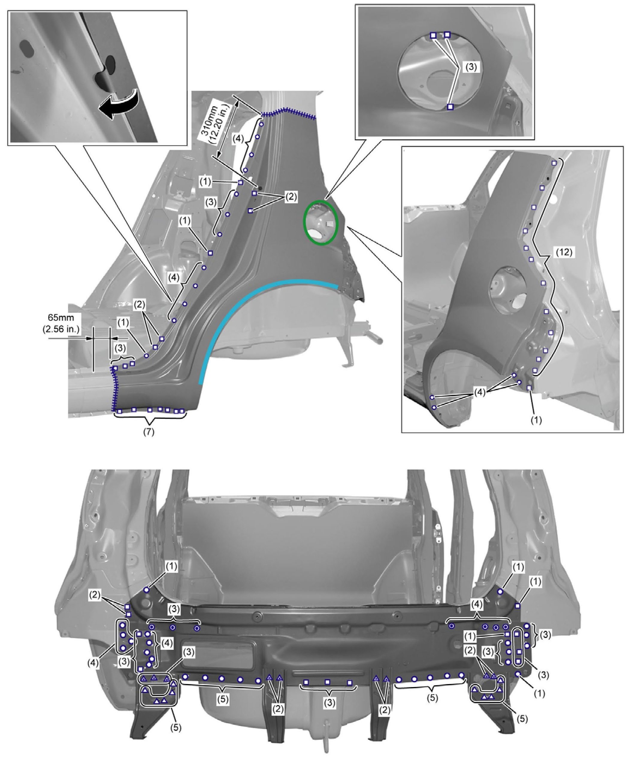 NOTE: *1: Use a spot weld machine compatible with panel thickness and steel panel type of welding spot to conduct spot weld.