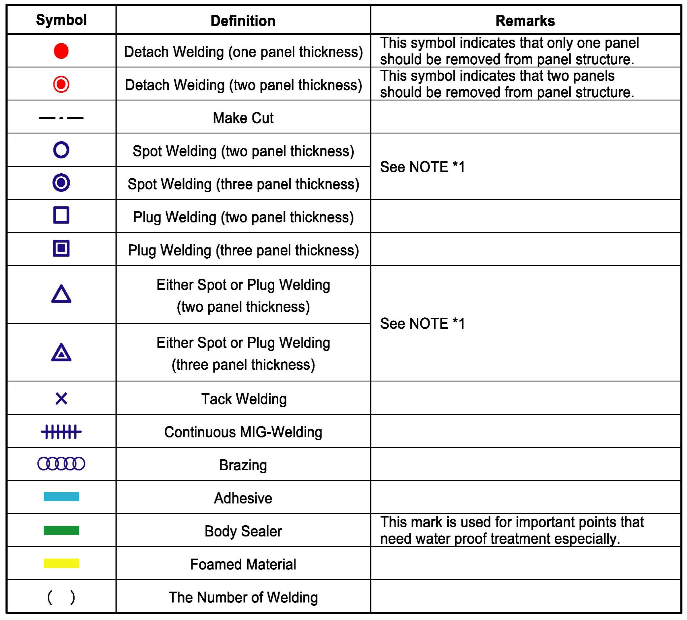 - Be noted that most of important information are inserted as symbols into every illustration. The following description of symbol definitions is essential for the body repair procedures.