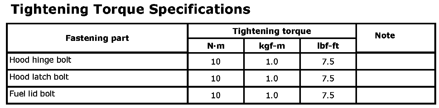 Tightening Torque SpecificationsTightening Torque Specifications: