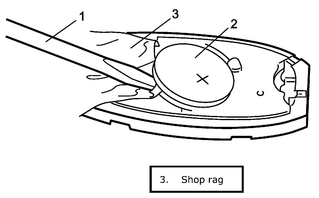 4. Remove battery (2) using a flat-end screwdriver (1) as shown in figure.