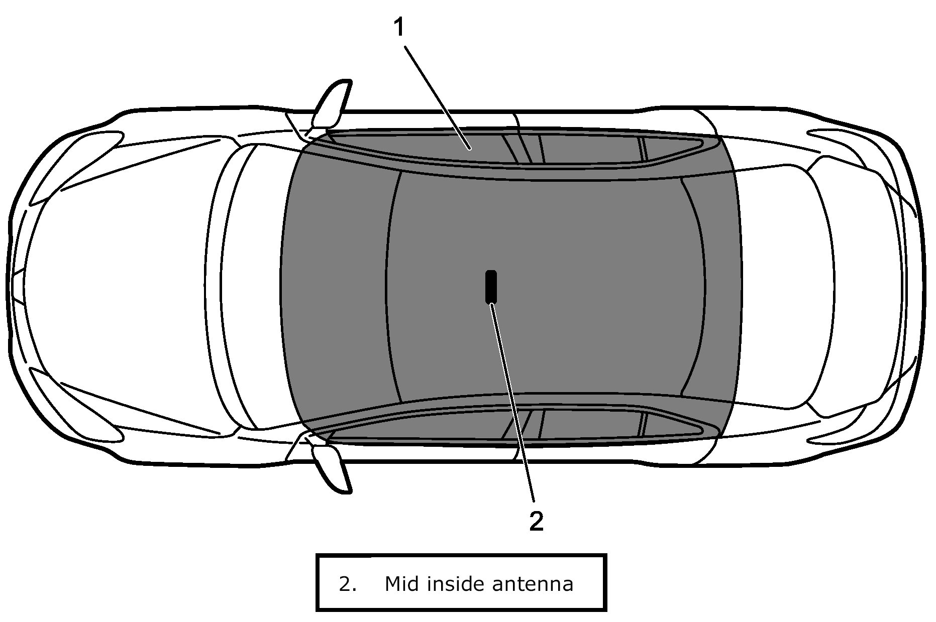 Engine can be started when remote controller is within mid inside antenna detection area (1).