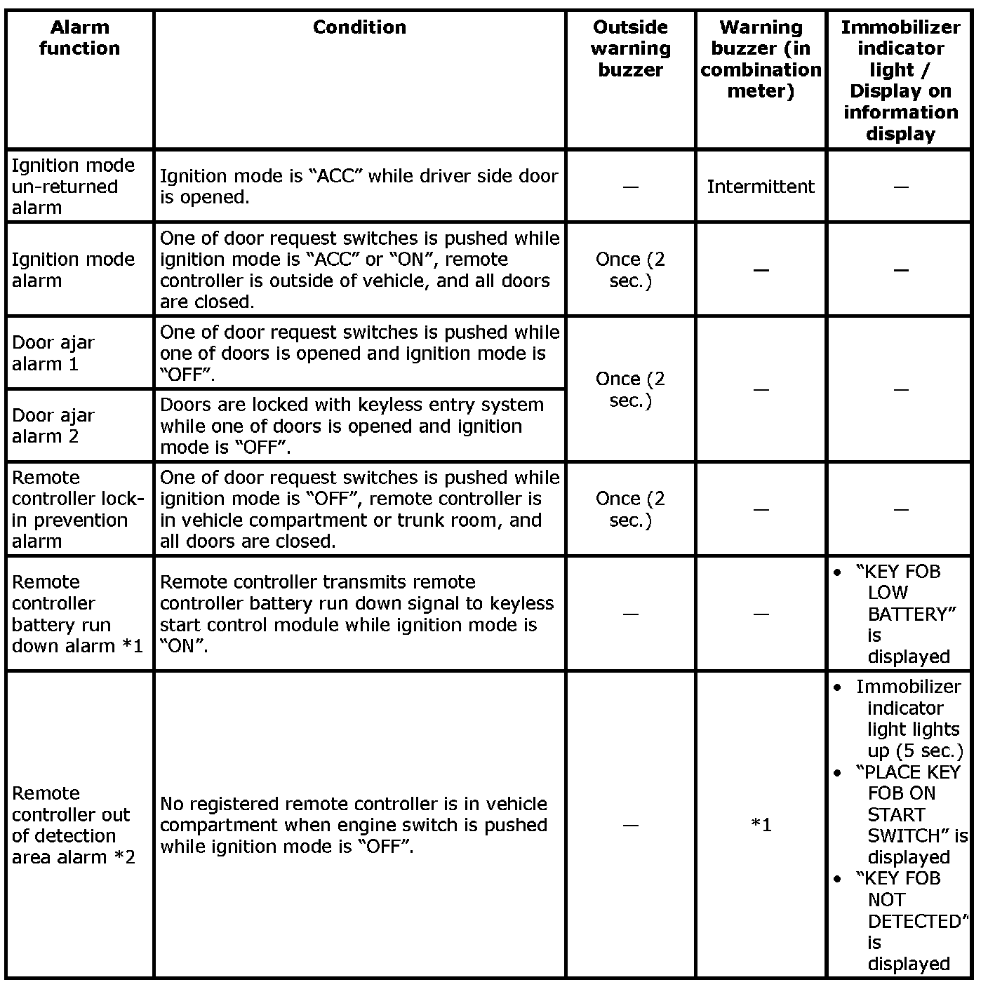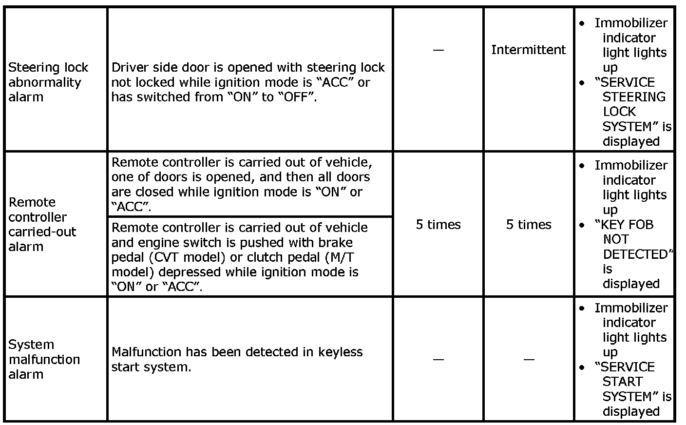 This function warns driver using outside warning buzzer, warning buzzer built in combination meter, immobilizer indicator light, and information display.