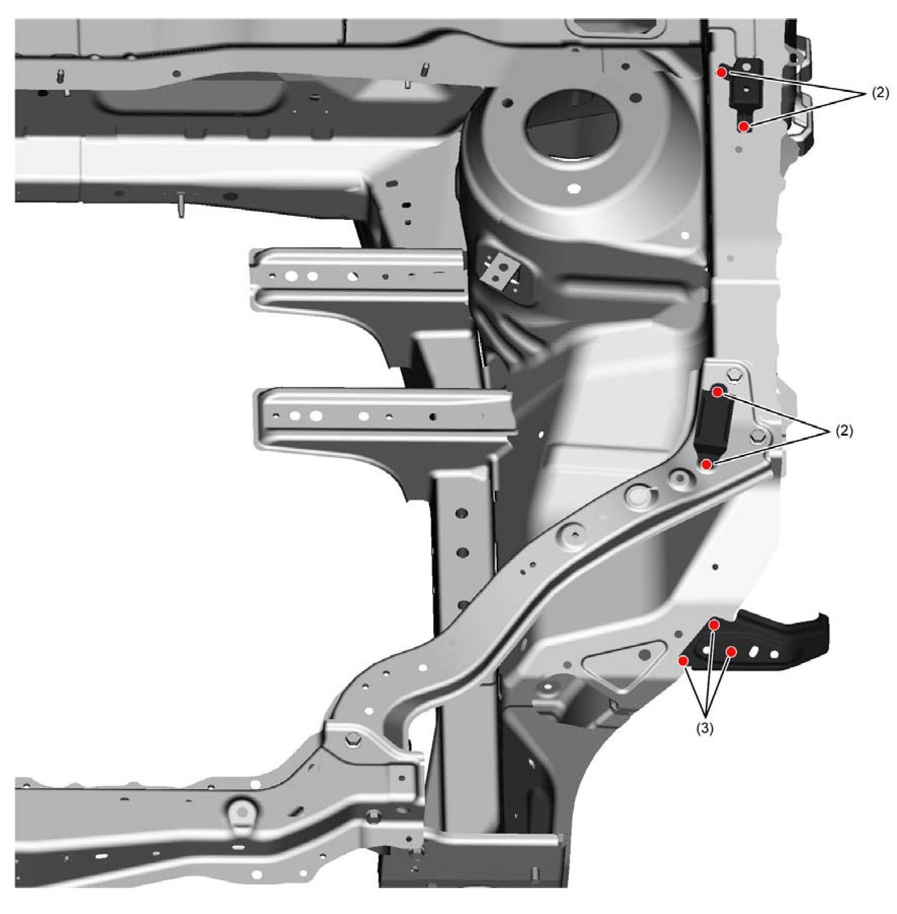 Front Fender Brackets Removal And InstallationNOTE: Welding method and number of welding points are the same on both sides. This repair instruction shows procedure for left side.
