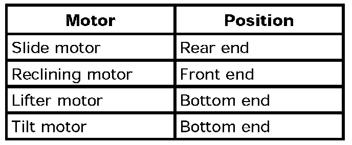 1. Operate each motor, one at a time, to move seat to position indicated in the following table and hold seat at each position for at least 5 seconds.