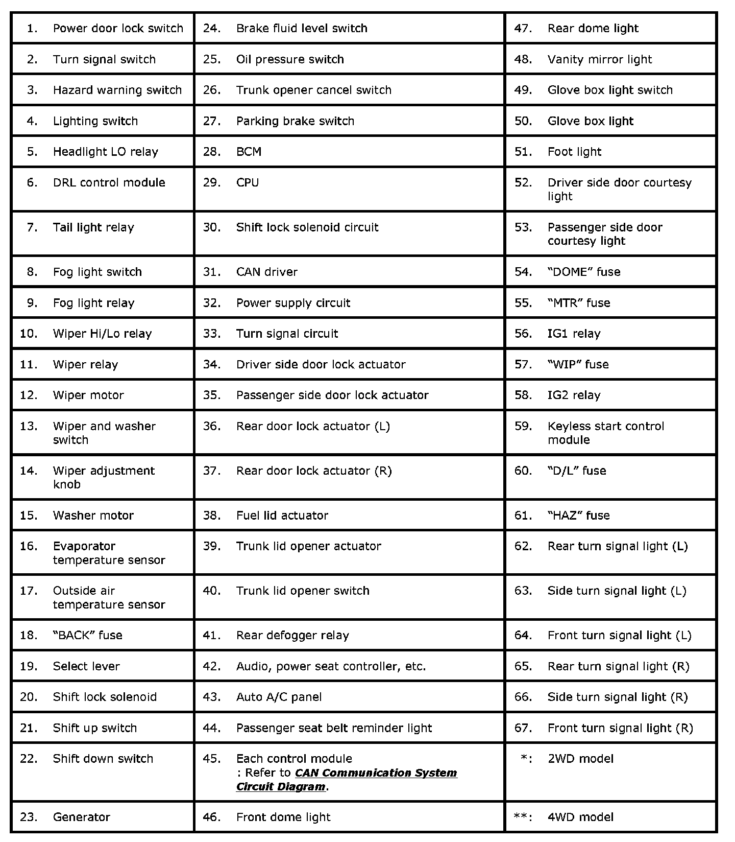 Body Electrical Control System Wiring Circuit Diagram