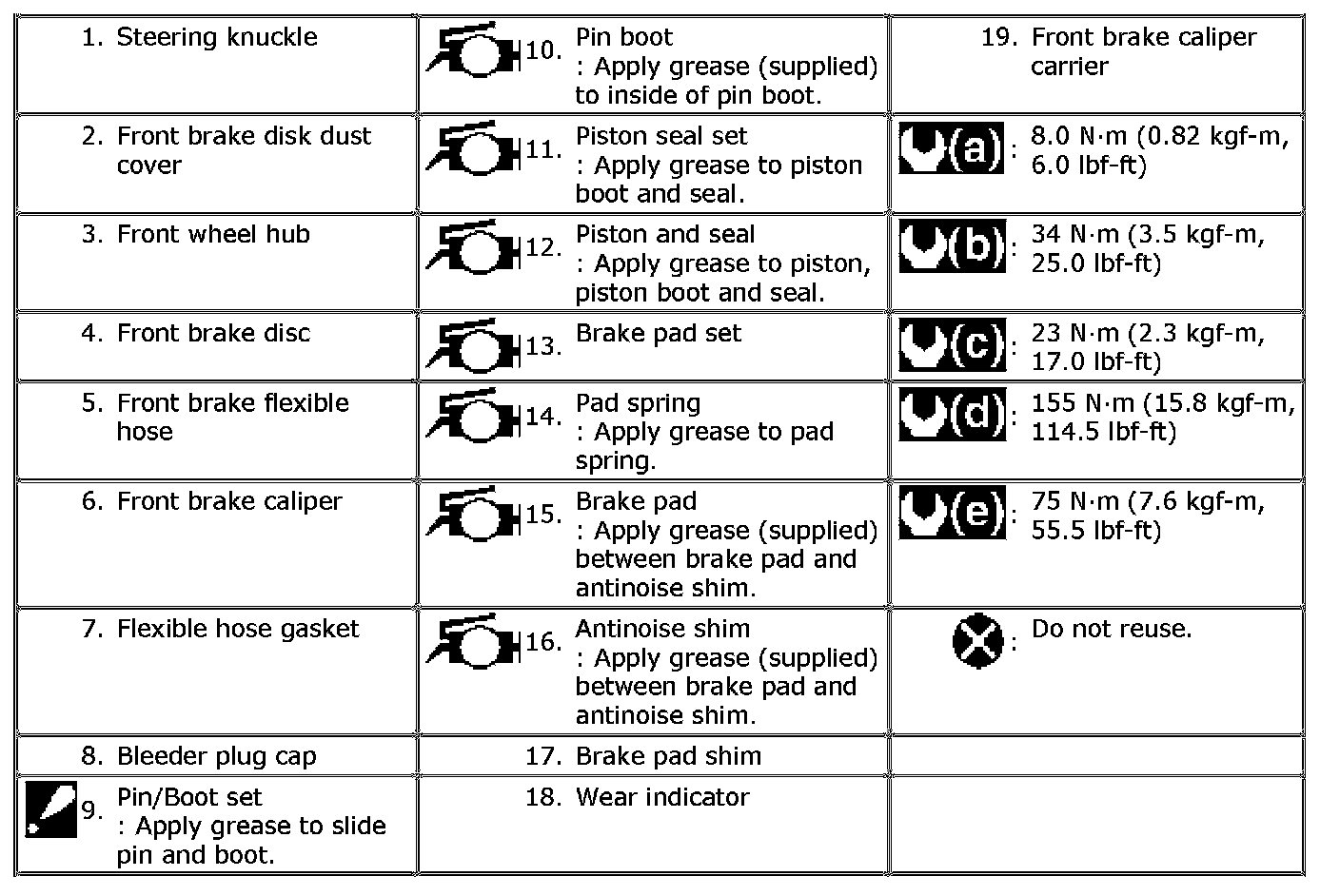 Front Brake Components