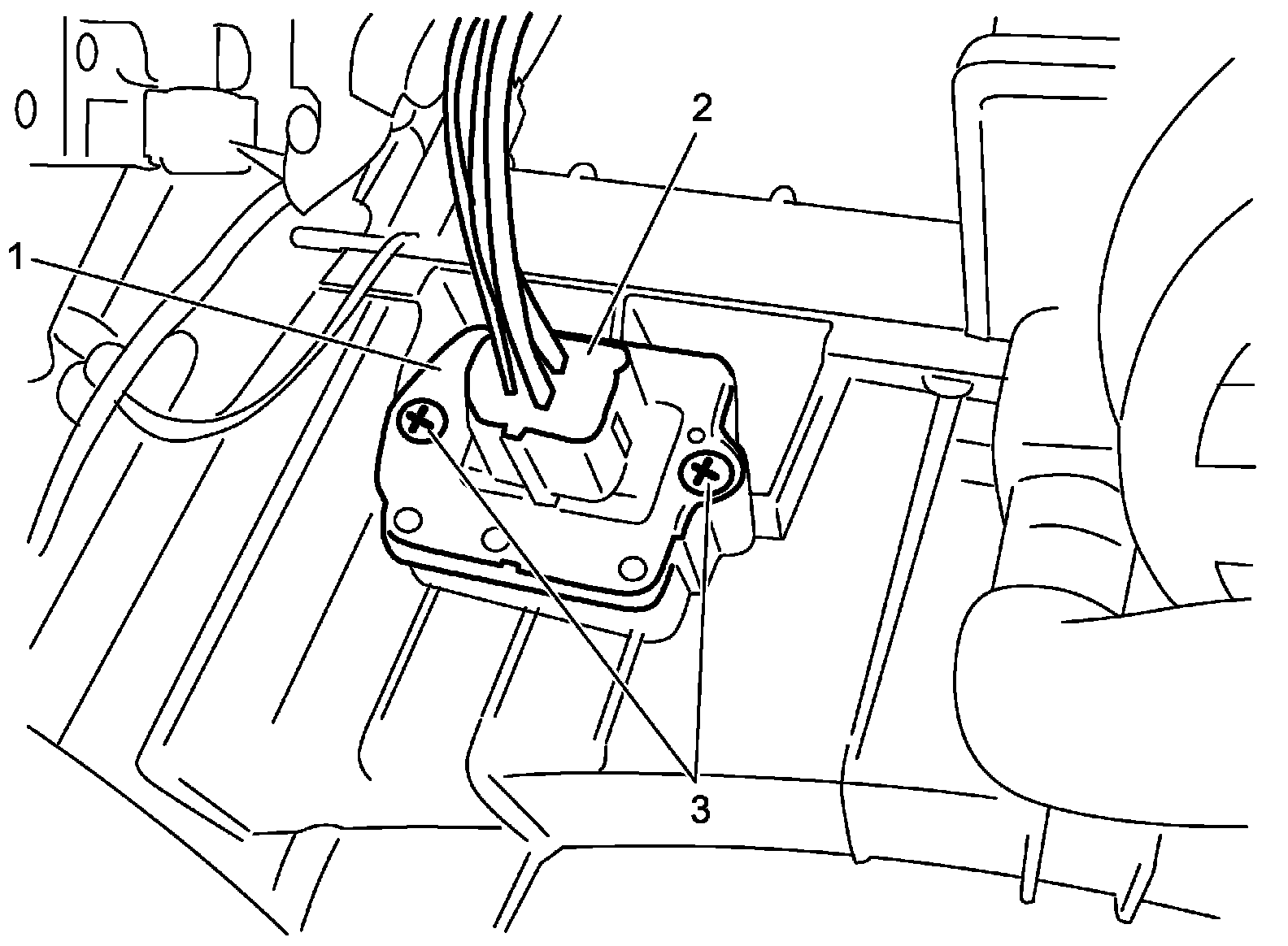 3. Disconnect connector (2) and remove screws (3).
