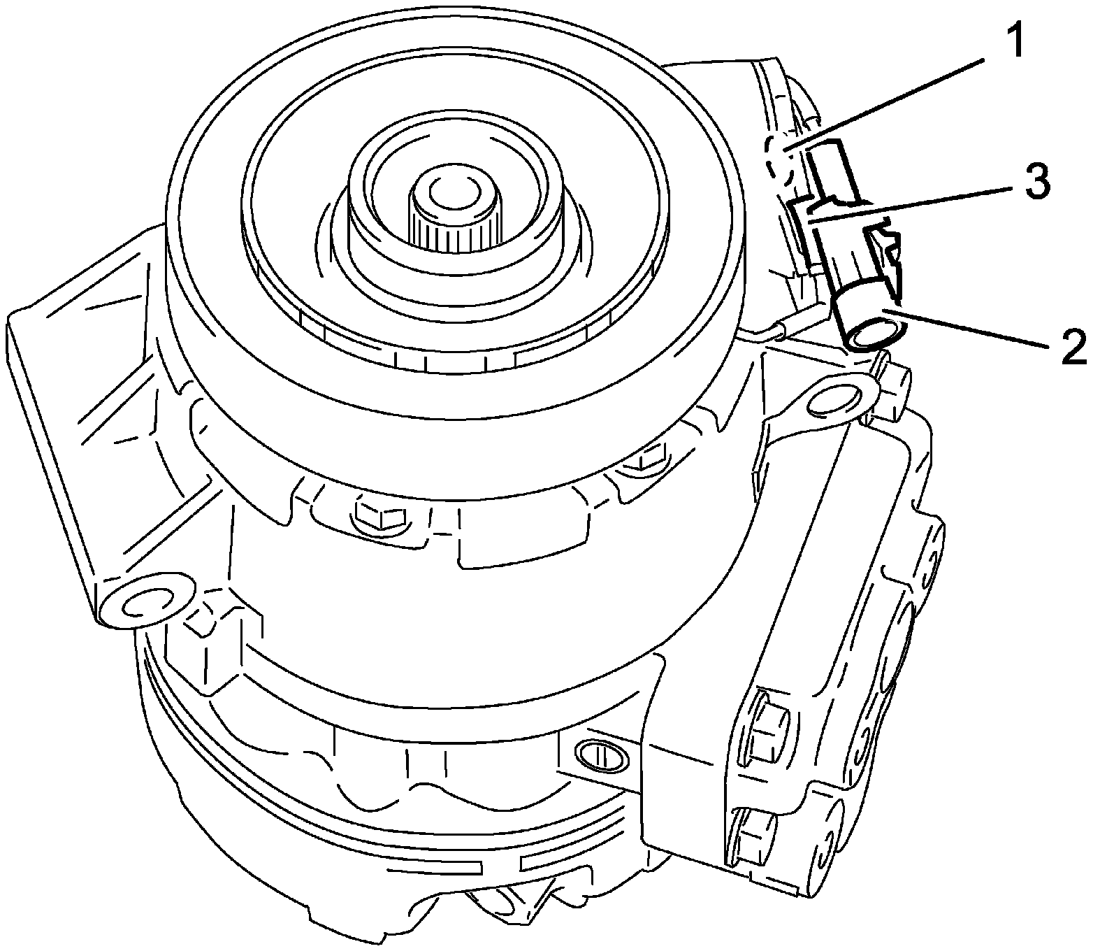 - Fit protrusion (1) on underside of magnet clutch coil into hole (2) on A/C compressor body assembly.