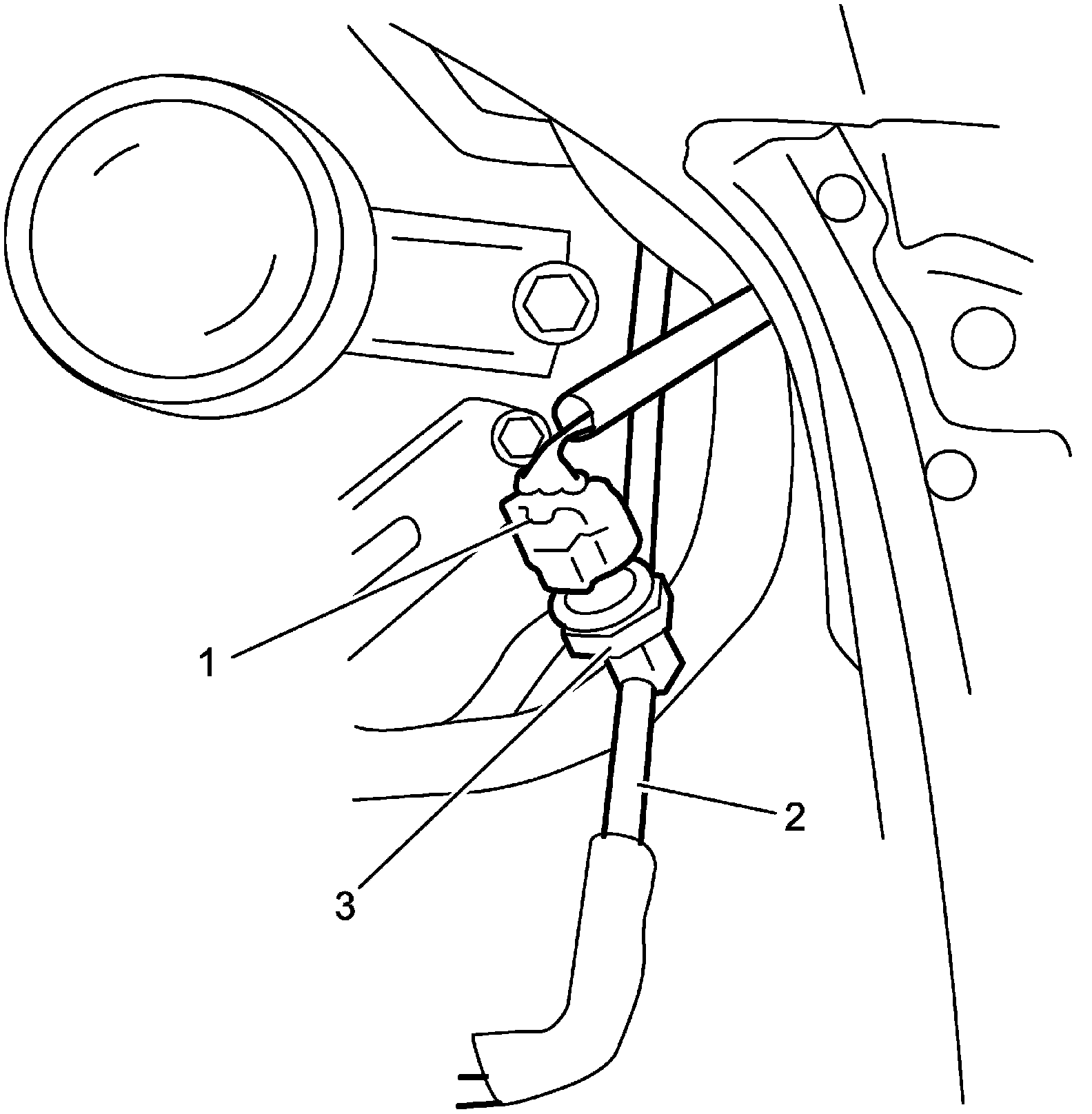 3. Remove A/C refrigerant pressure sensor (3) from liquid pipe (2).