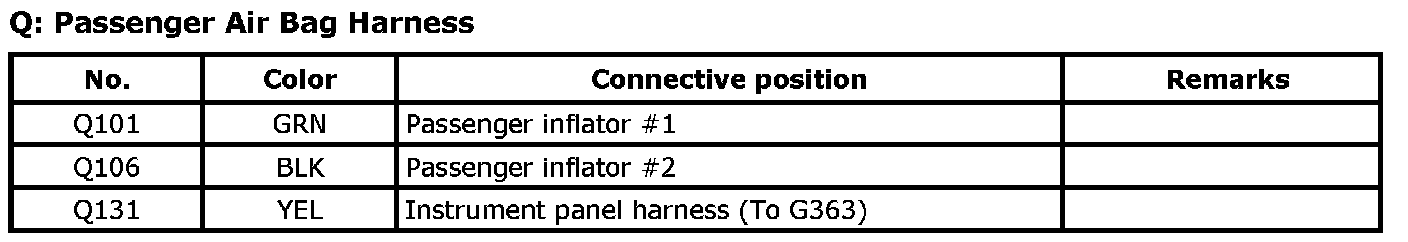 Q: Passenger Air Bag Harness Index: