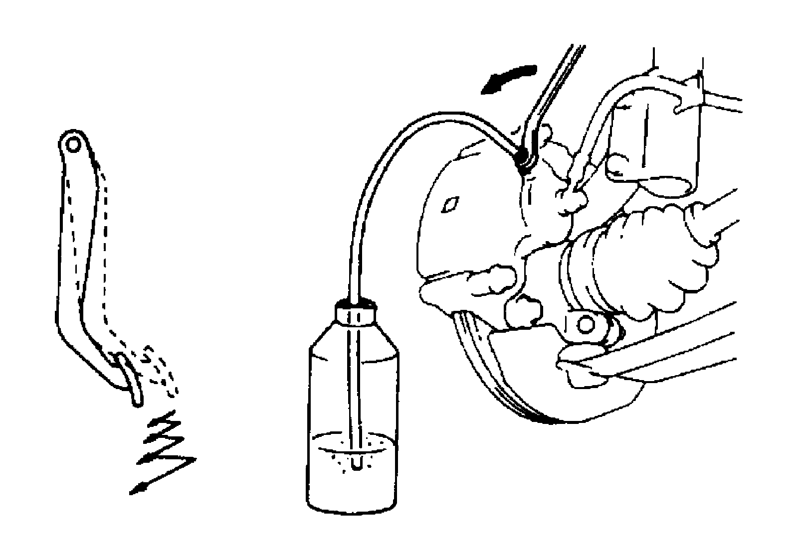 3) Depress brake pedal several times, and then while holding it depressed, loosen bleeder plug about one-half turn.
