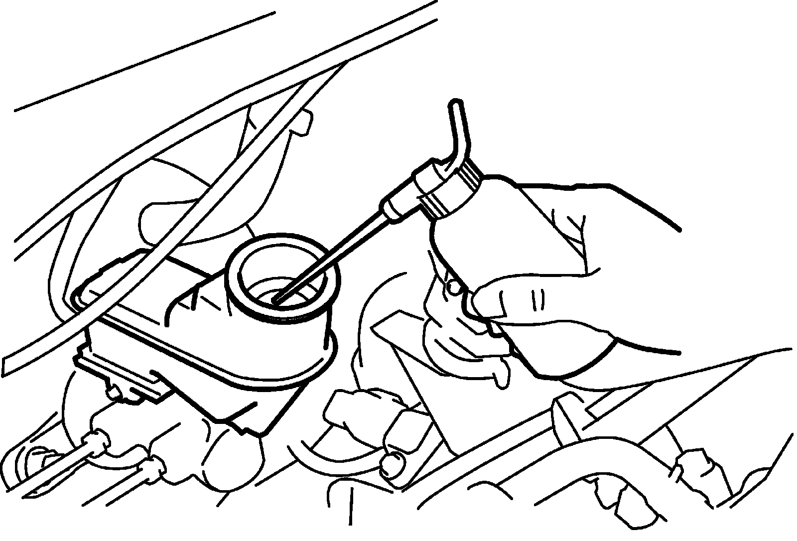 1) Using a dropper or the like, extract some brake fluid from reservoir of brake master cylinder.