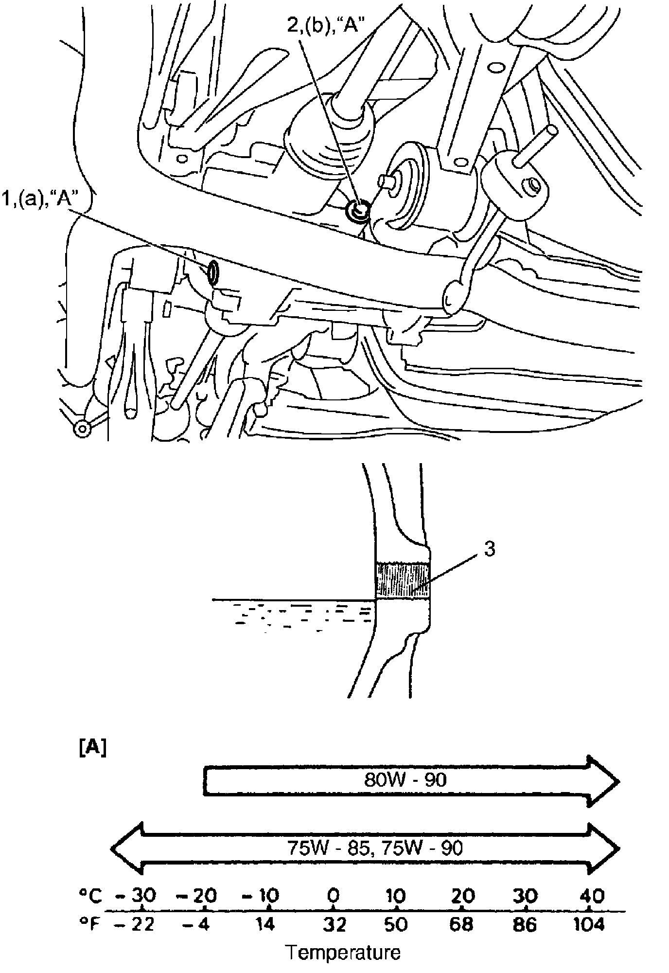 : API GL-5 (For SAE classification, refer to viscosity chart [A] in figure.)