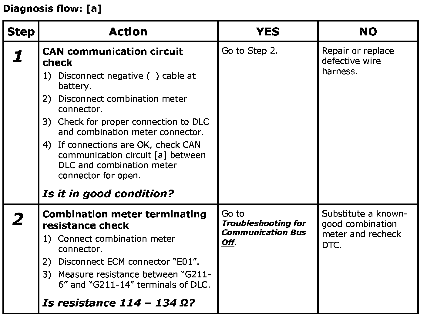 - If it is not possible to select suitable diagnosis flow code from Diagnosis Flow Selection Table or "two or more diagnosis flows are selectable", perform Troubleshooting for Communication Bus Off Troubleshooting For Communication Bus OFF