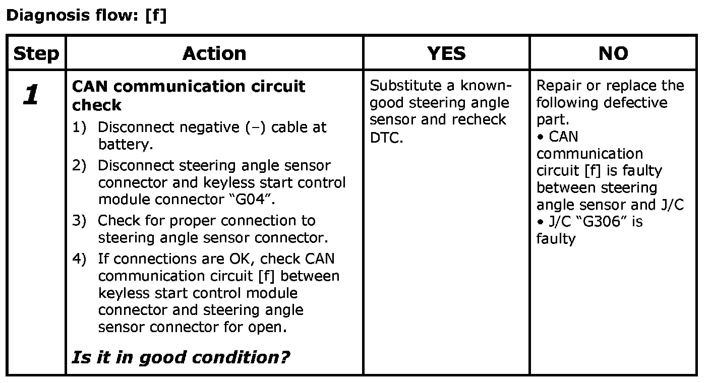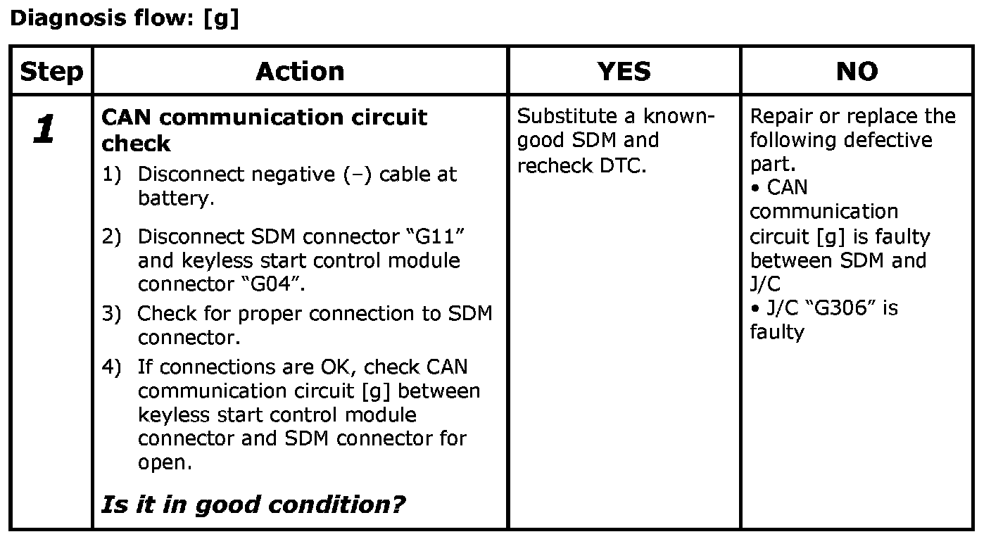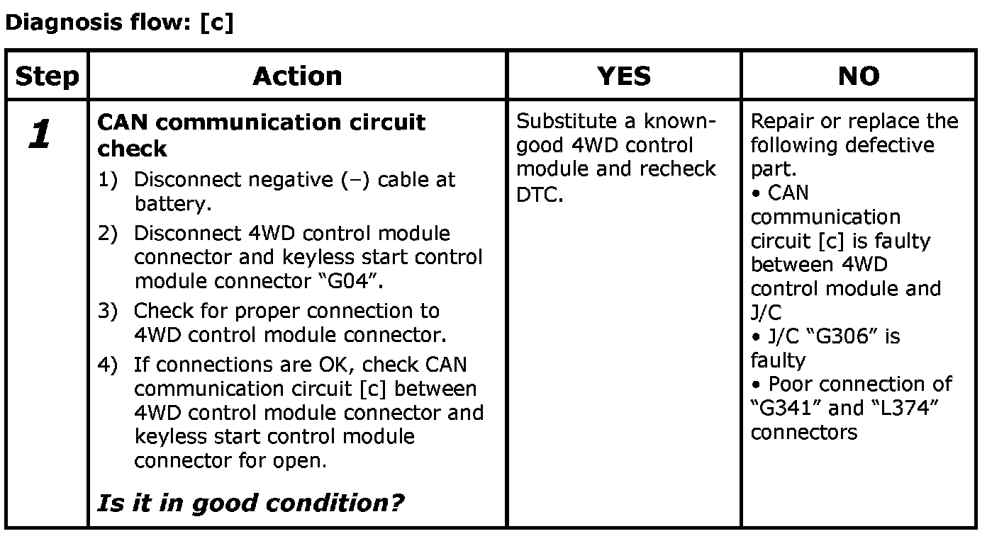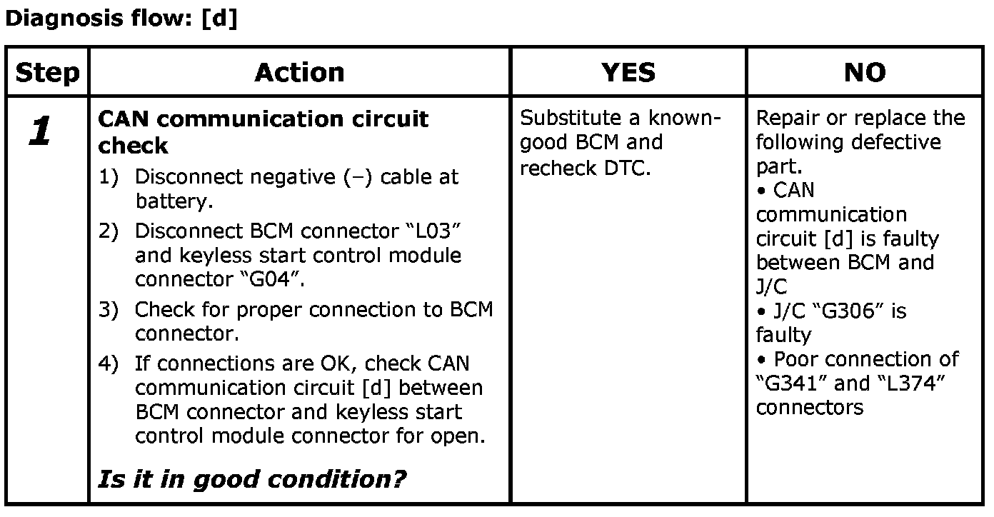 - If an individual control module or sensor fails to communicate, check whether power circuit or ground circuit of control module or sensor is in good condition, by referring to system circuit diagram, etc. before diagnosing trouble with flow chart.