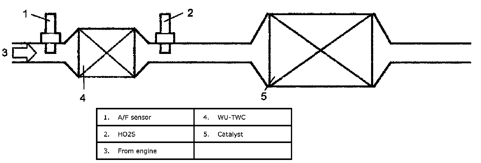 The system has A/F sensor and HO2S located upstream and downstream of WU-TWC as shown in figure.