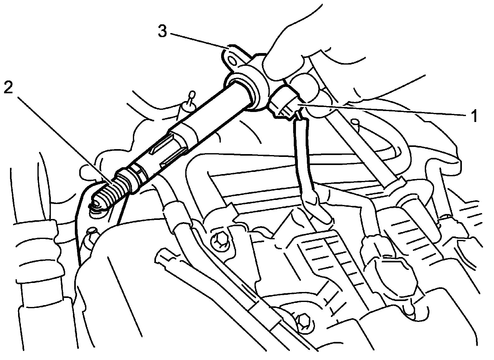 4. Connect ignition coil connector (1) to ignition coil assembly (3).