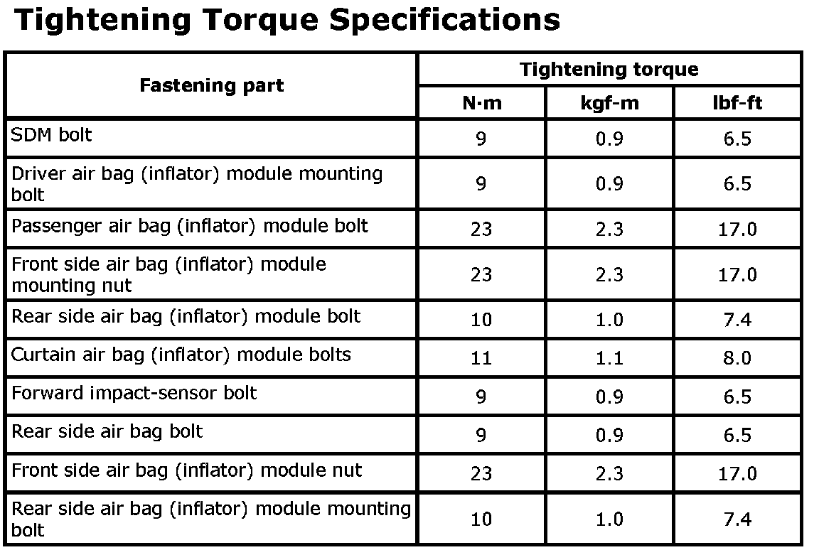 Front Side Air Bag (Inflator) Module Components Front Side Air Bag (Inflator) Module Components