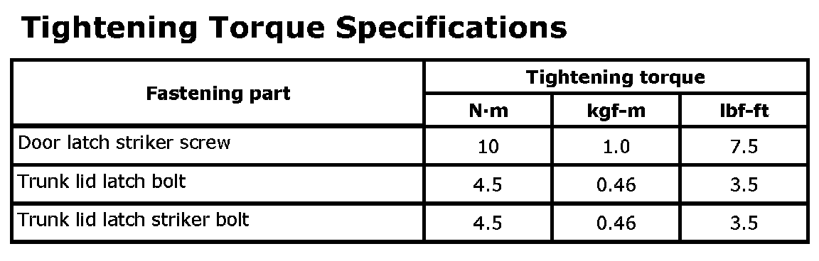 Tightening Torque Specifications