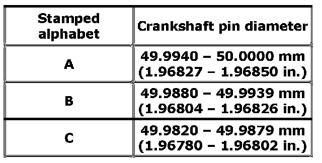 Standard 49.982 - 50.000 mm (1.9678 - 1.9685 in.)