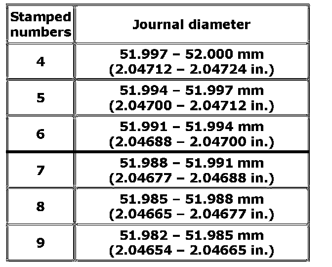 Standard 51.982 - 52.000 mm (2.0466 - 2.0472 in)