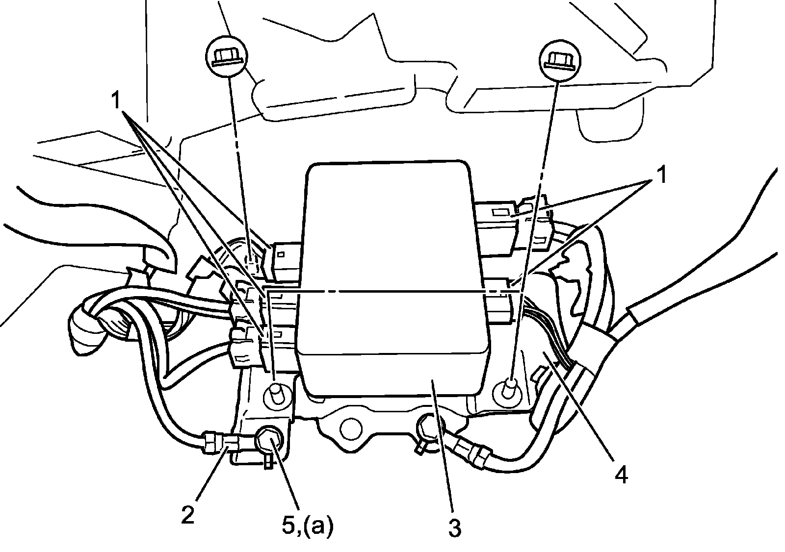 9) Remove nuts and remove P/S control module with bracket (4) from floor panel.