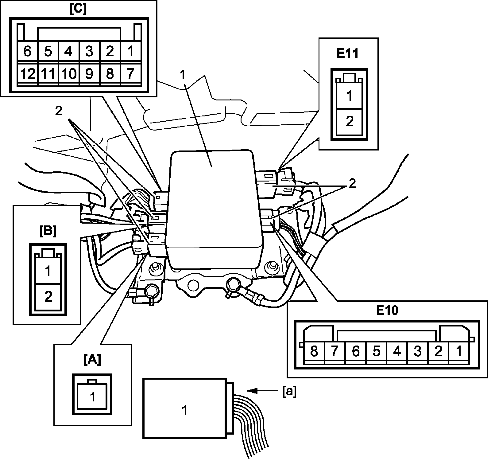 Inspection of P/S Control Module and Its CircuitsP/S control module (1) and its circuits can be checked at P/S control module wiring connectors (2) by measuring voltage and resistance.