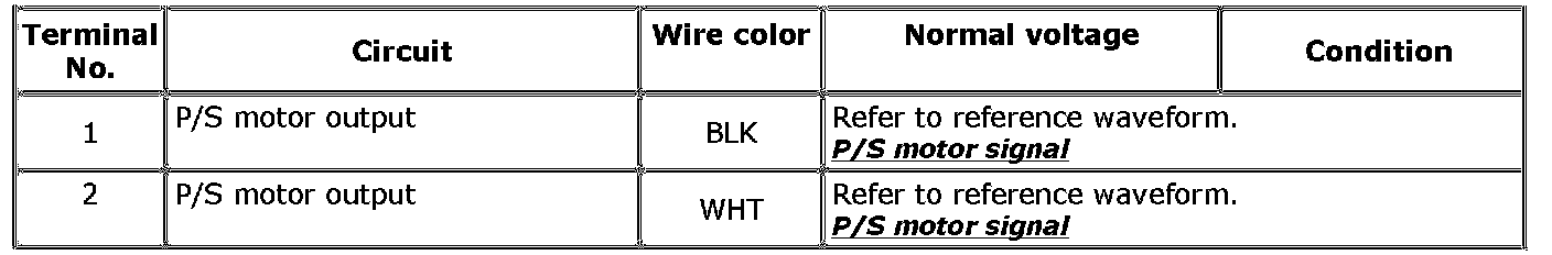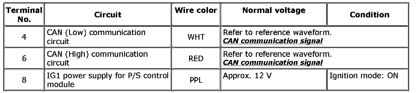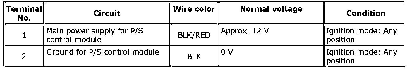 4) Connect connector to P/S control module and measure voltage at each terminal.