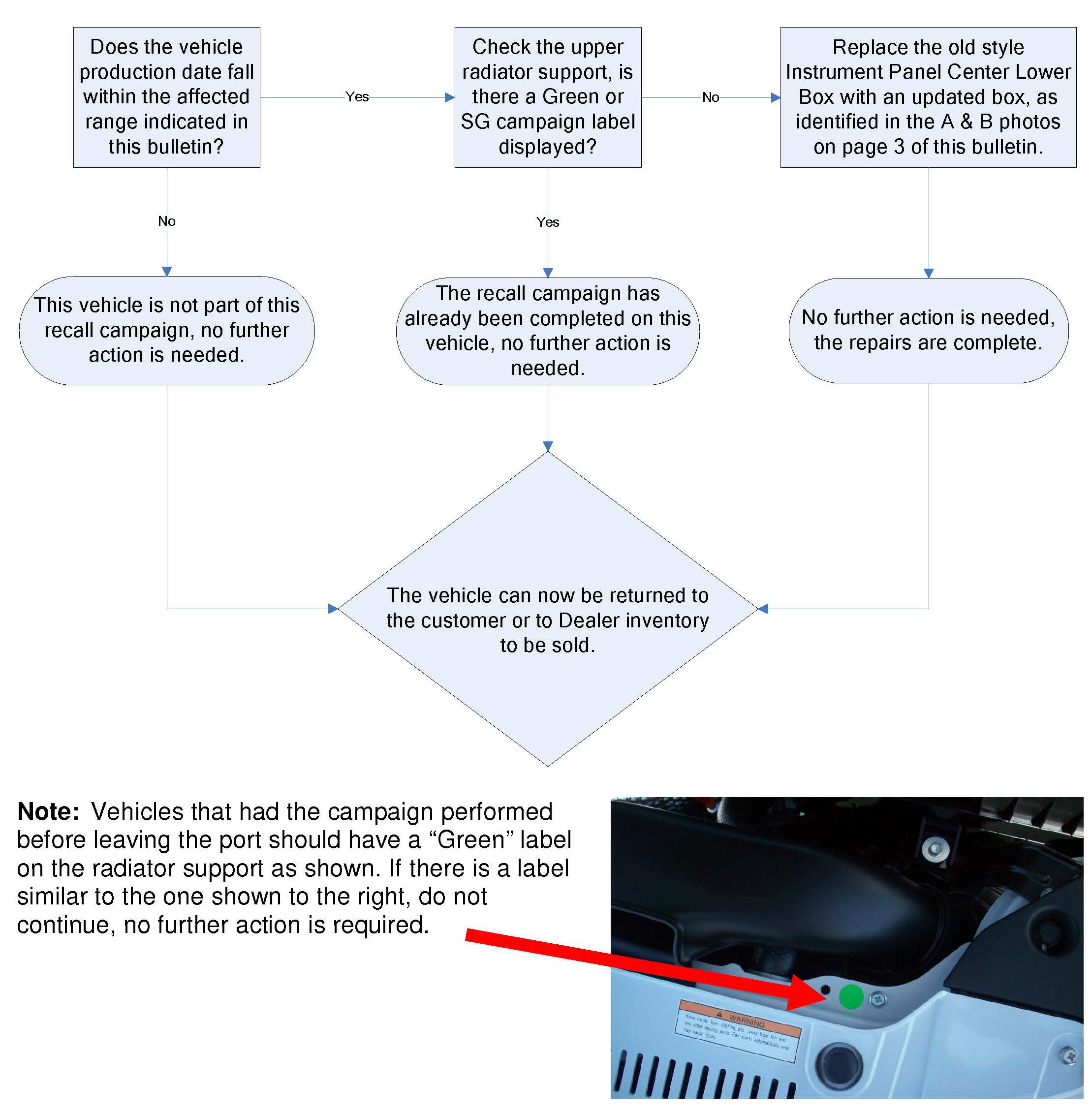 36. Apply the proper campaign label to the upper radiator support in an area where it will be easily seen and identified, and record your Dealer Code in the white portion of the label.