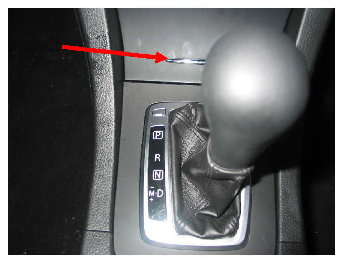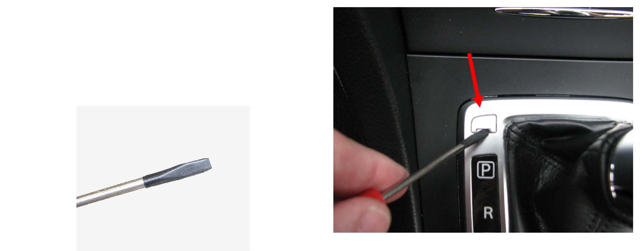 6. Use the micro flat-blade (pocket) screwdriver to push the shift interlock release pin and move the shift selector to the "N" position.