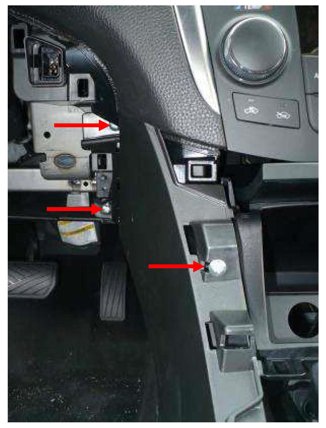 13. Remove the two (2) screws located at the left and right lower corners that hold the steering column cover, then remove the cover by pulling it backward and upward.