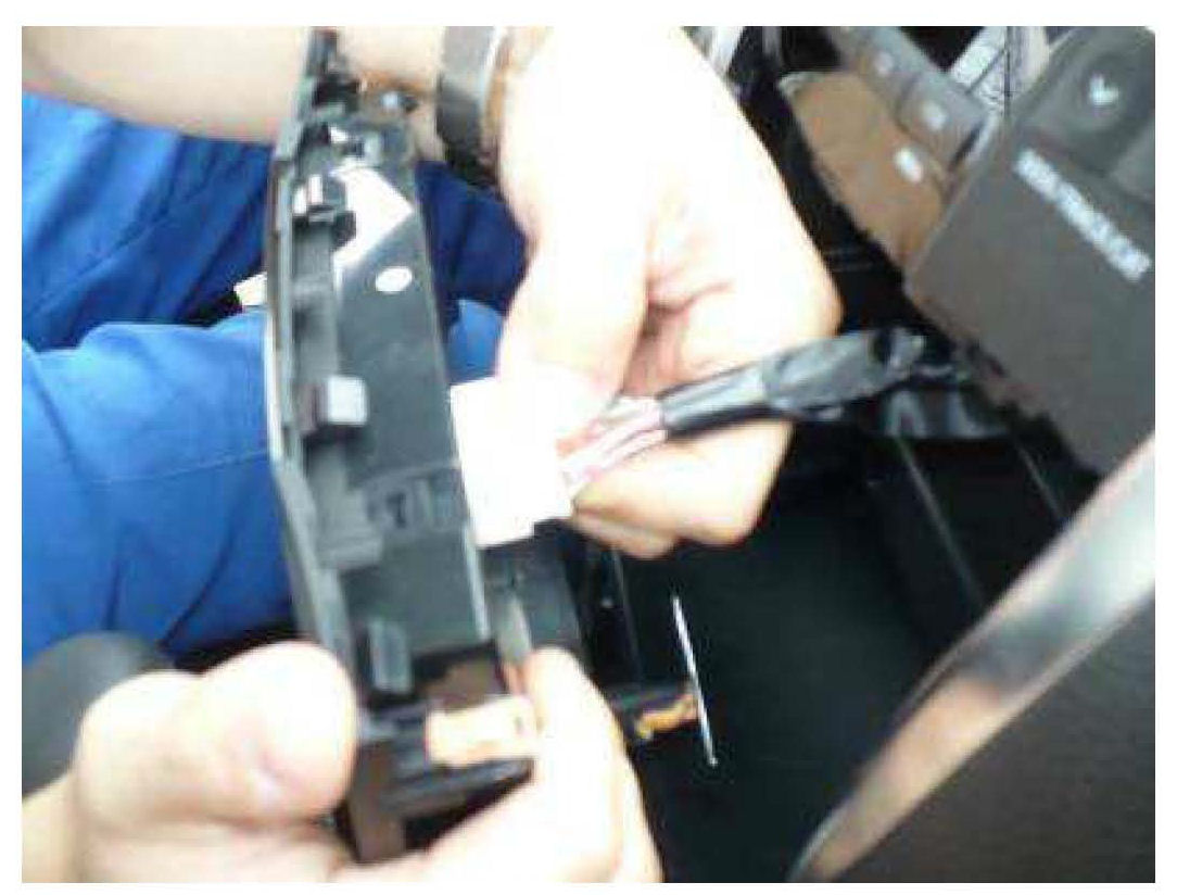 32. Position the new instrument panel center lower box (replacement part), for installation and connect the socket connector(s).