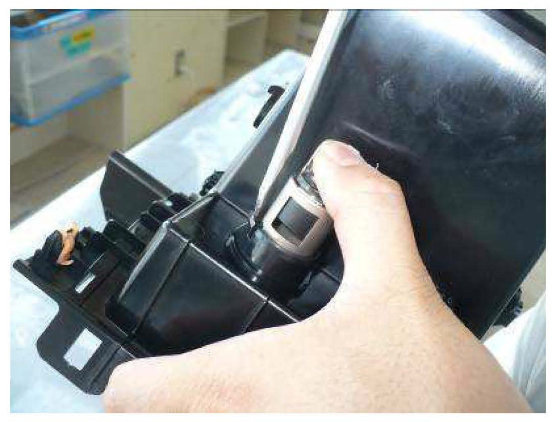 25. To remove the accessory socket from the box, insert the flat-blade screwdriver into the slot shown in the illustration.