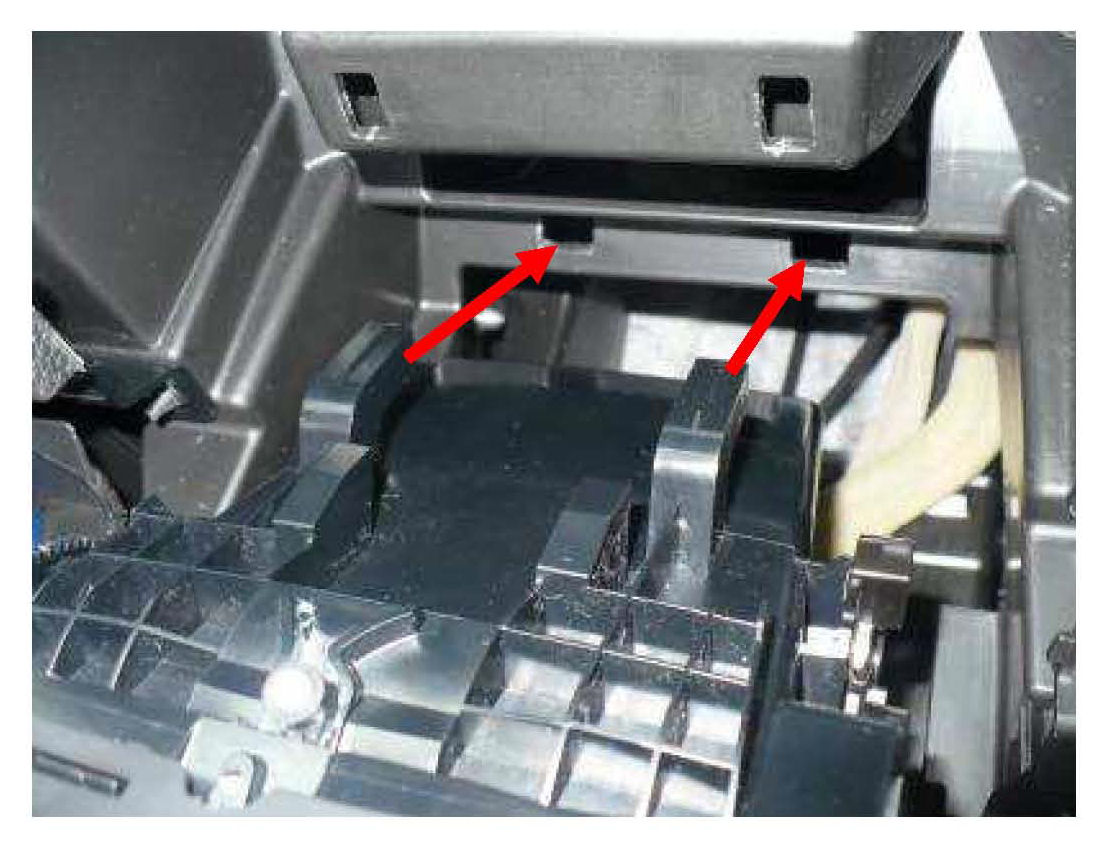 27. To remove the USB socket (or cover plug if not USB equipped) press in on the two retainer claws and push out the socket.