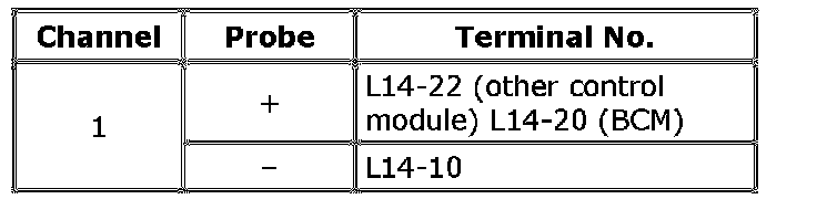 ^ As each terminal voltage is affected by battery voltage, confirm that it is 11 V or more when ignition mode of keyless push start system is in "ON".