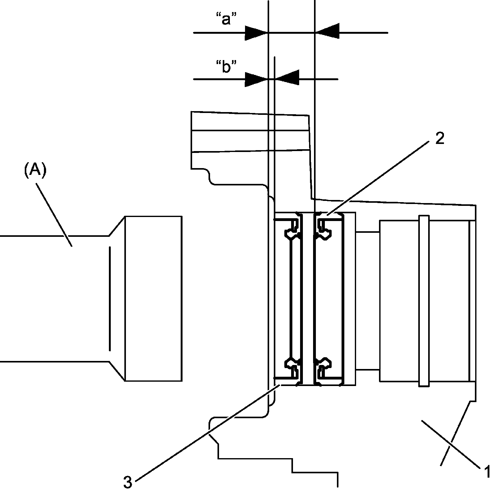 ^ "a": distance between outer race end of reduction driven gear bearings (mm (in.))