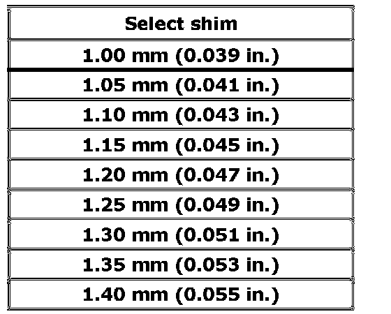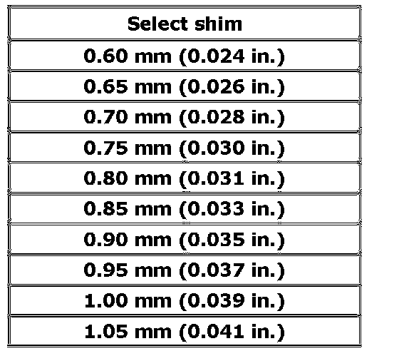 Available reduction driven gear right shim (4) thickness
