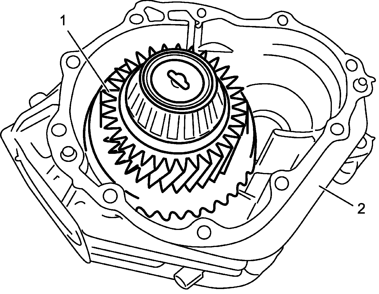 c) Install reduction driven gear (1) to transfer left case (2).