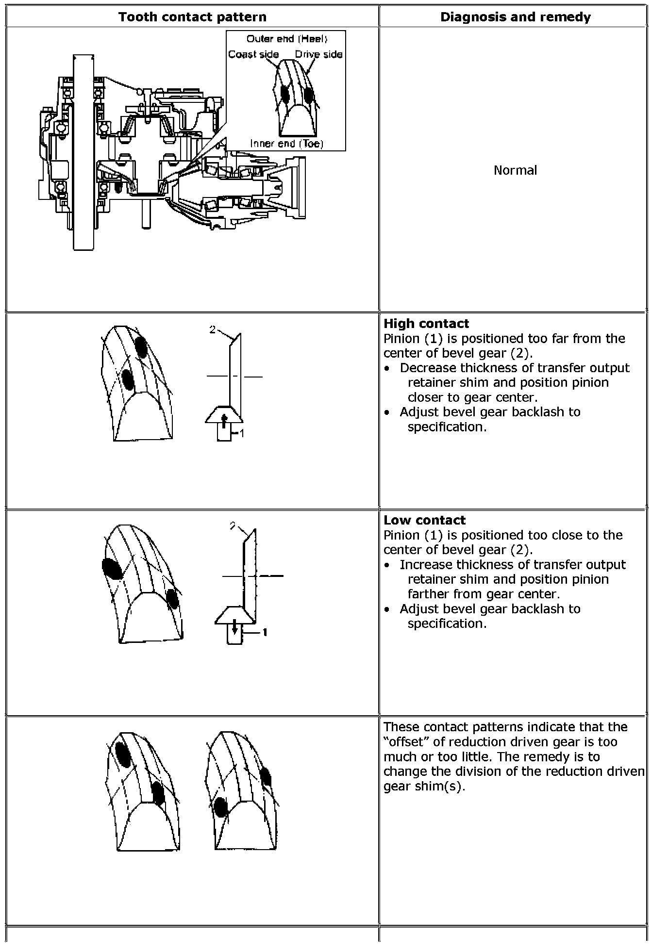 ^ If bevel gear backlash and bevel pinion shims are adjusted properly, correct tooth contact should be provided.