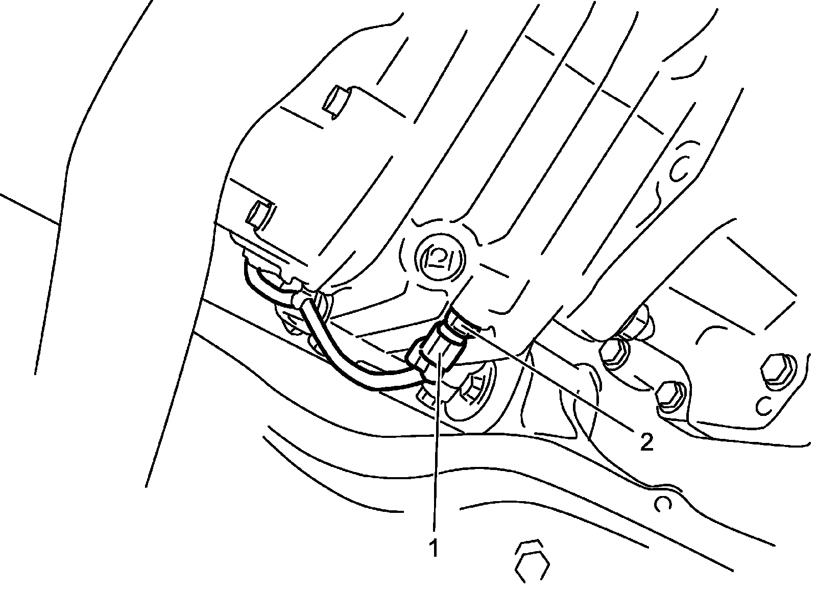 3) Disconnect transfer oil temperature sensor connector (1), and remove transfer oil temperature sensor (2).