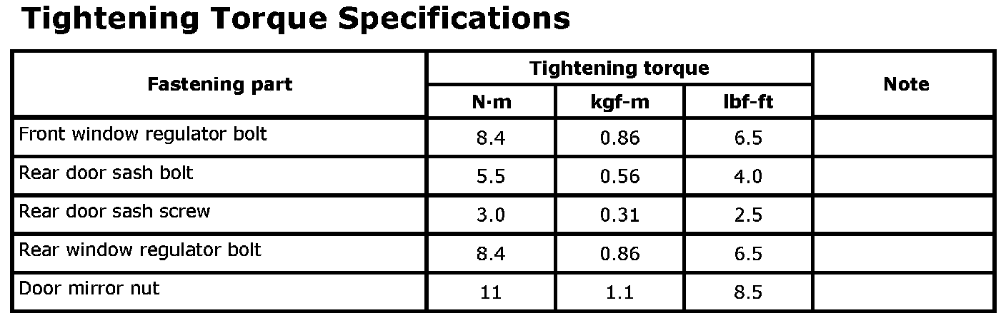 Tightening Torque SpecificationsTightening Torque Specifications: