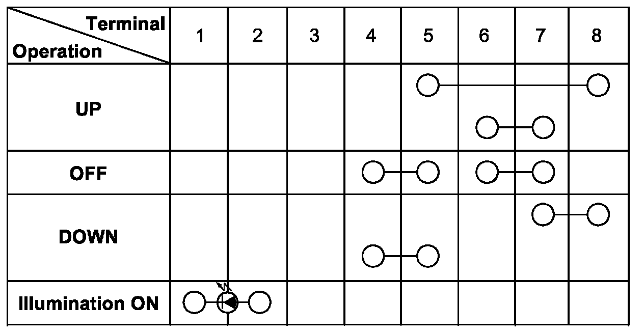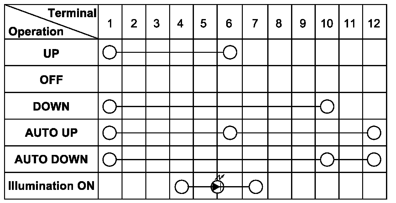 Power Window Sub Switch InspectionCheck continuity between terminals at each switch position.