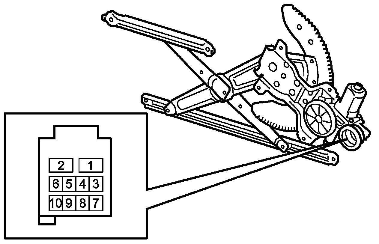 - Check front window regulator assembly with connectors disconnected from power window motor.