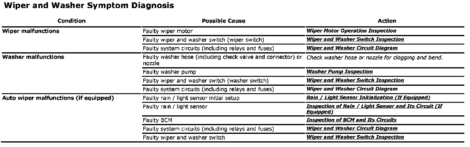 Wiper and Washer Symptom Diagnosis