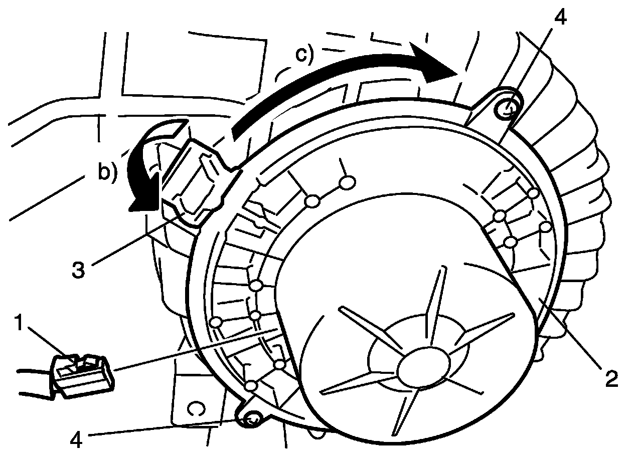 3. Remove blower motor (2) from HVAC unit as follows.