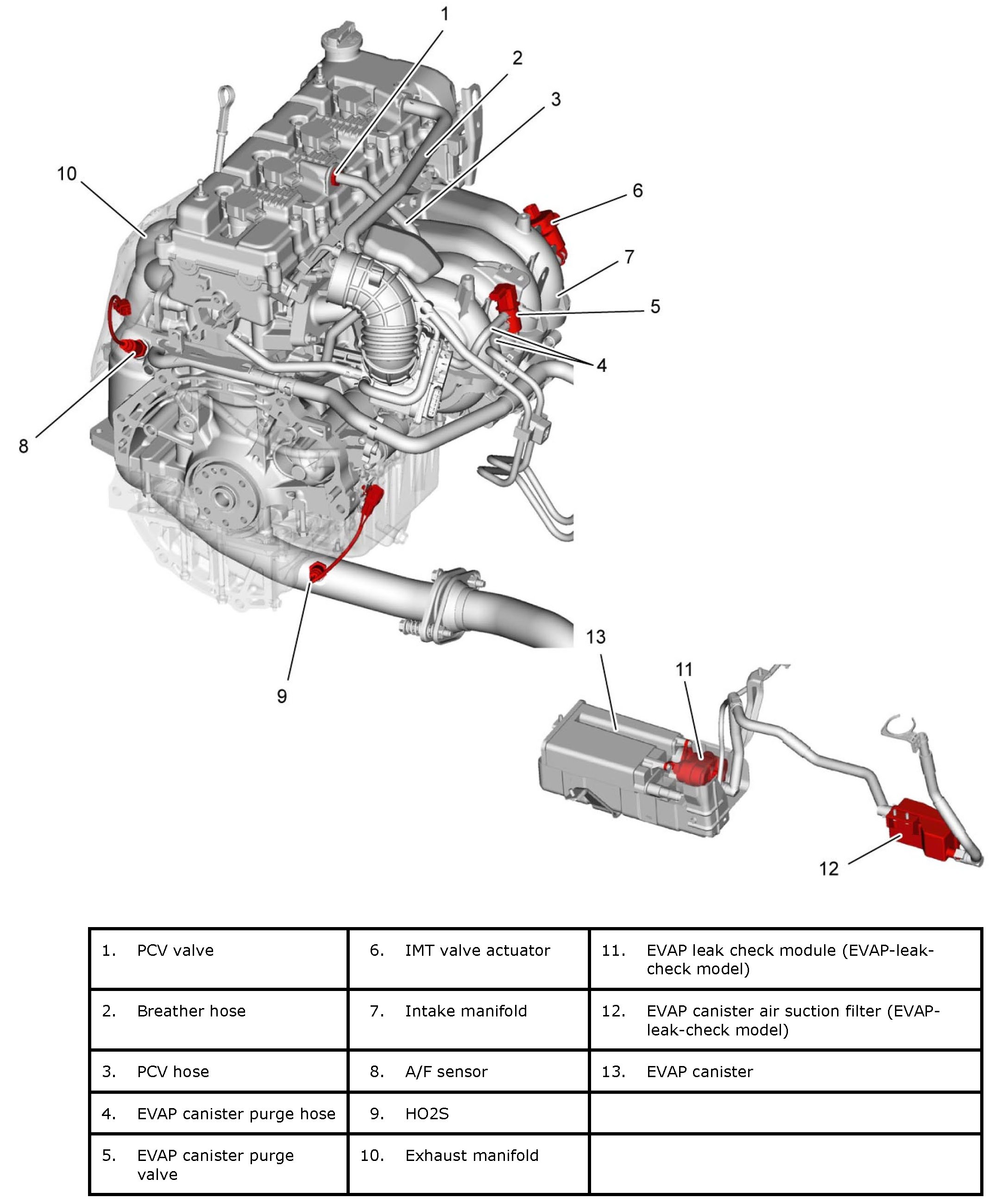 The emission control system includes EVAP and PCV systems.