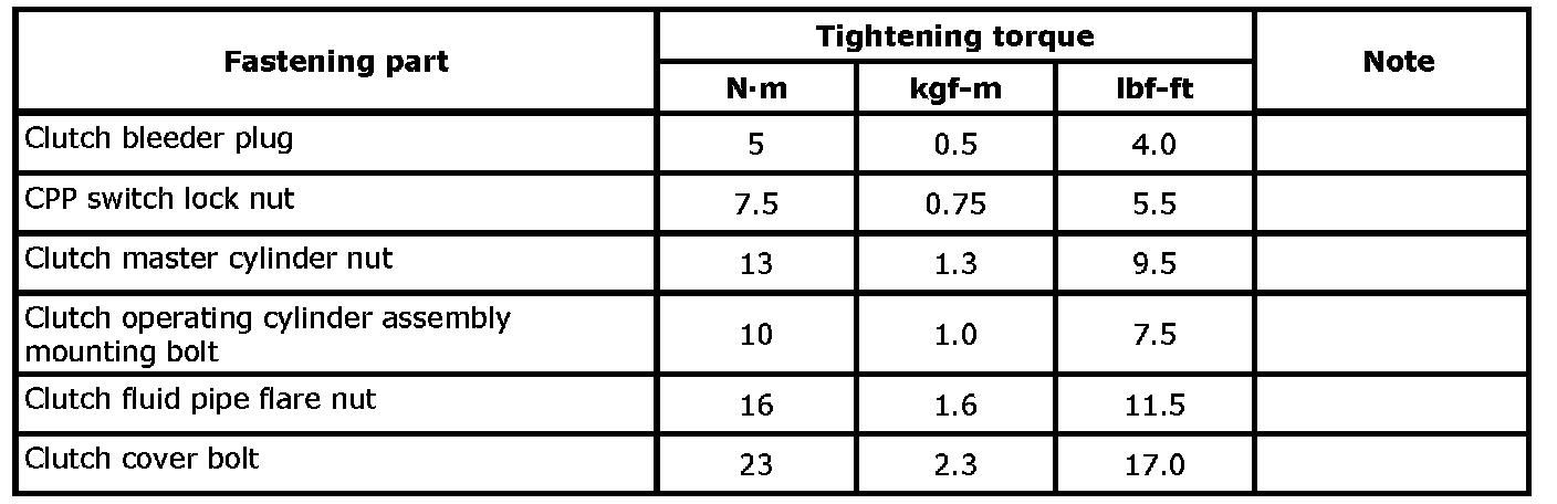 For the tightening torque of fastener not specified in this section, refer to Fasteners Information.