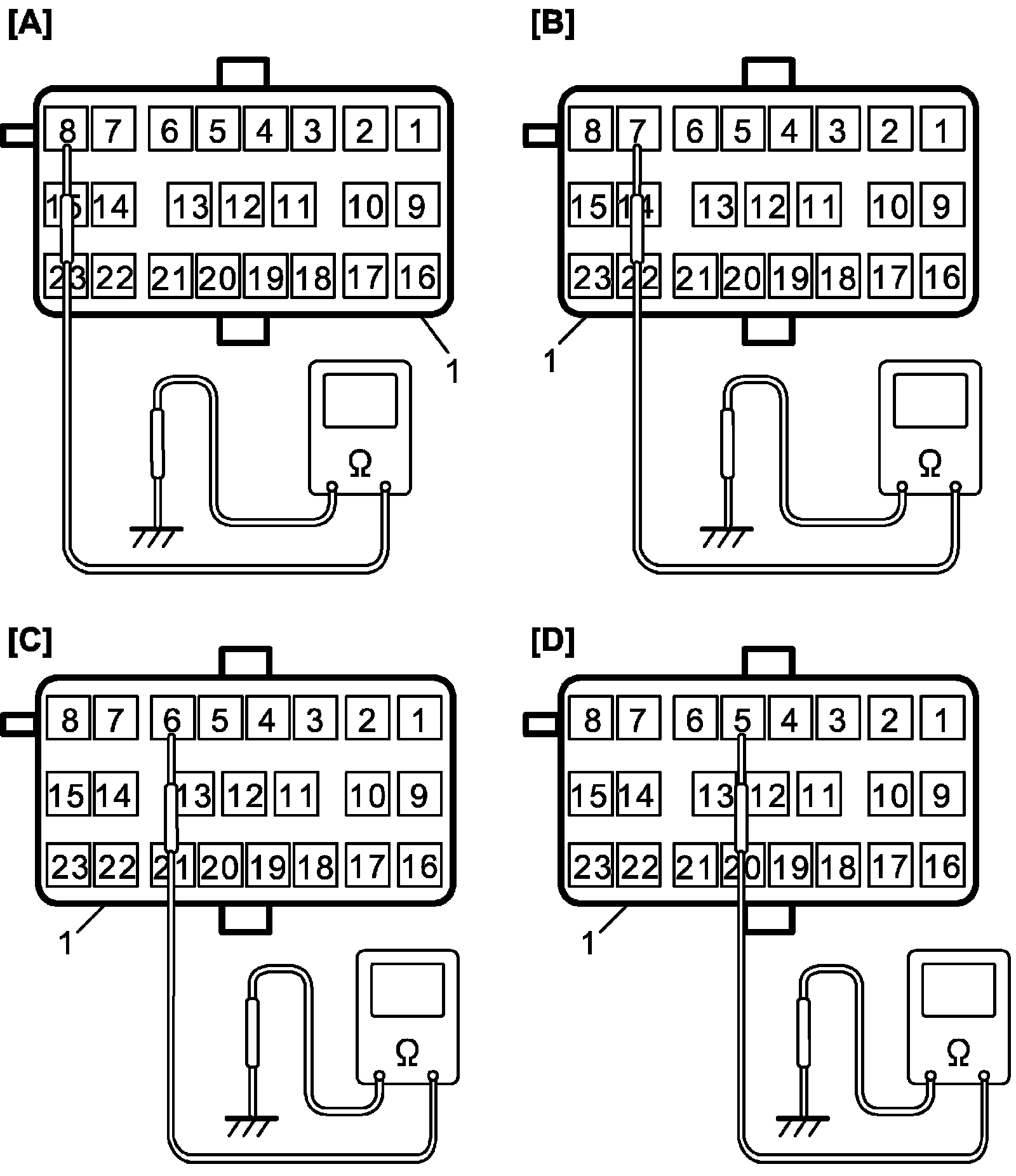 4) Check resistance of each solenoid valve and its circuit.