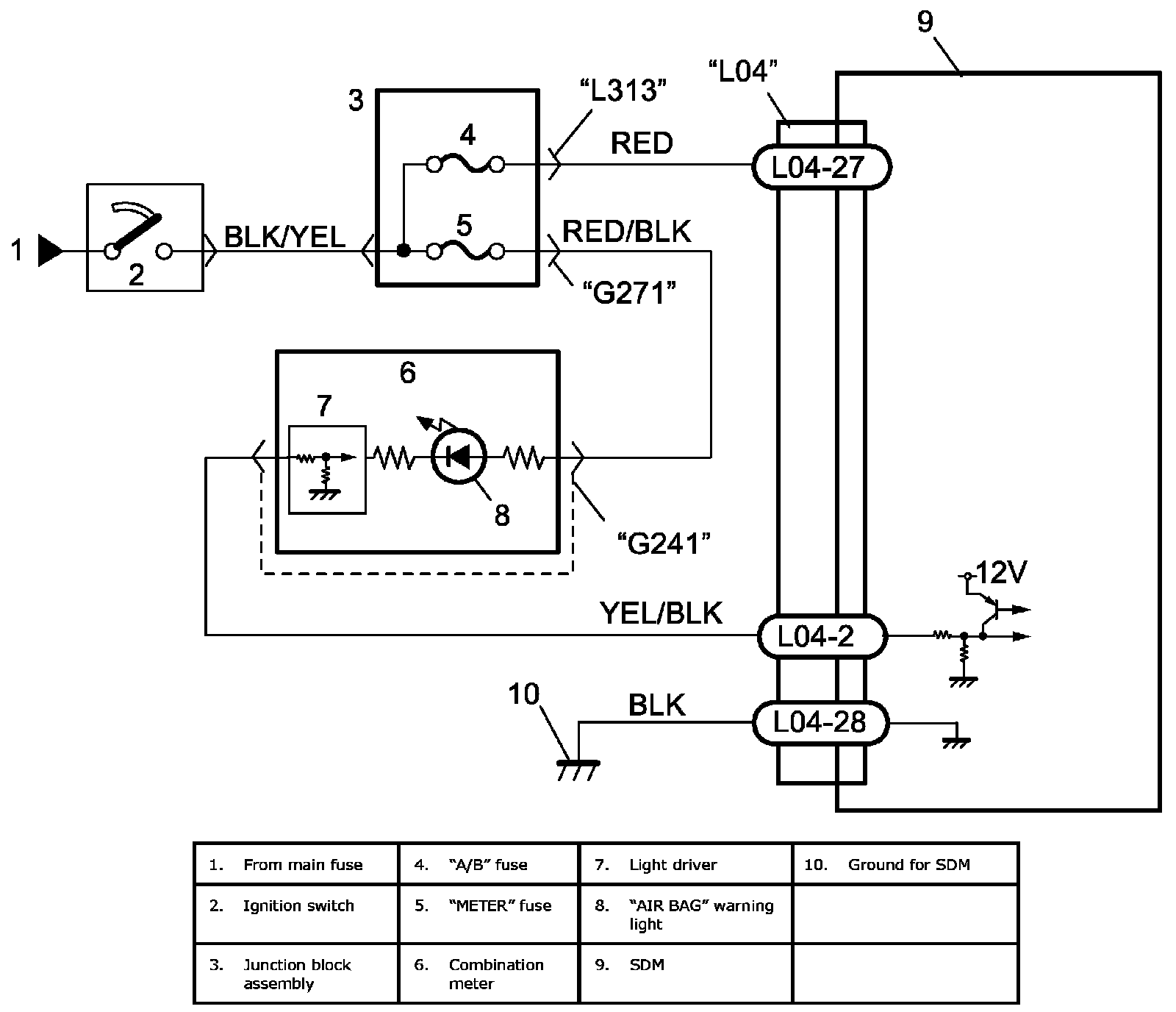 DTC B1014: "AIR BAG" Warning Light CircuitWiring Diagram